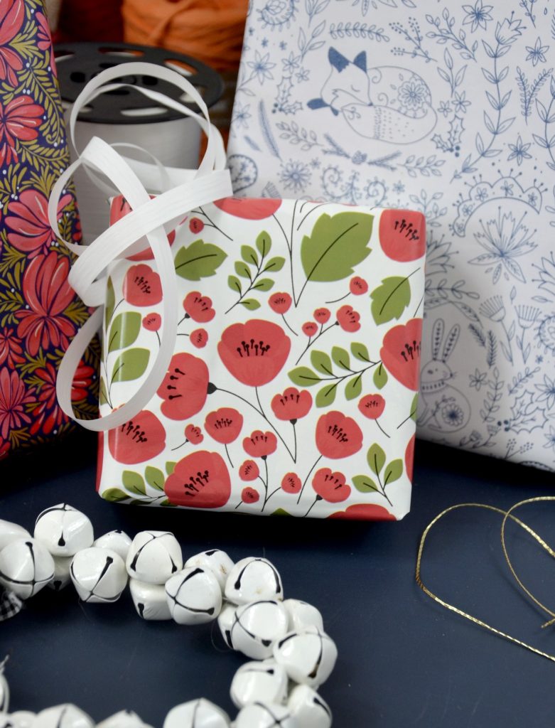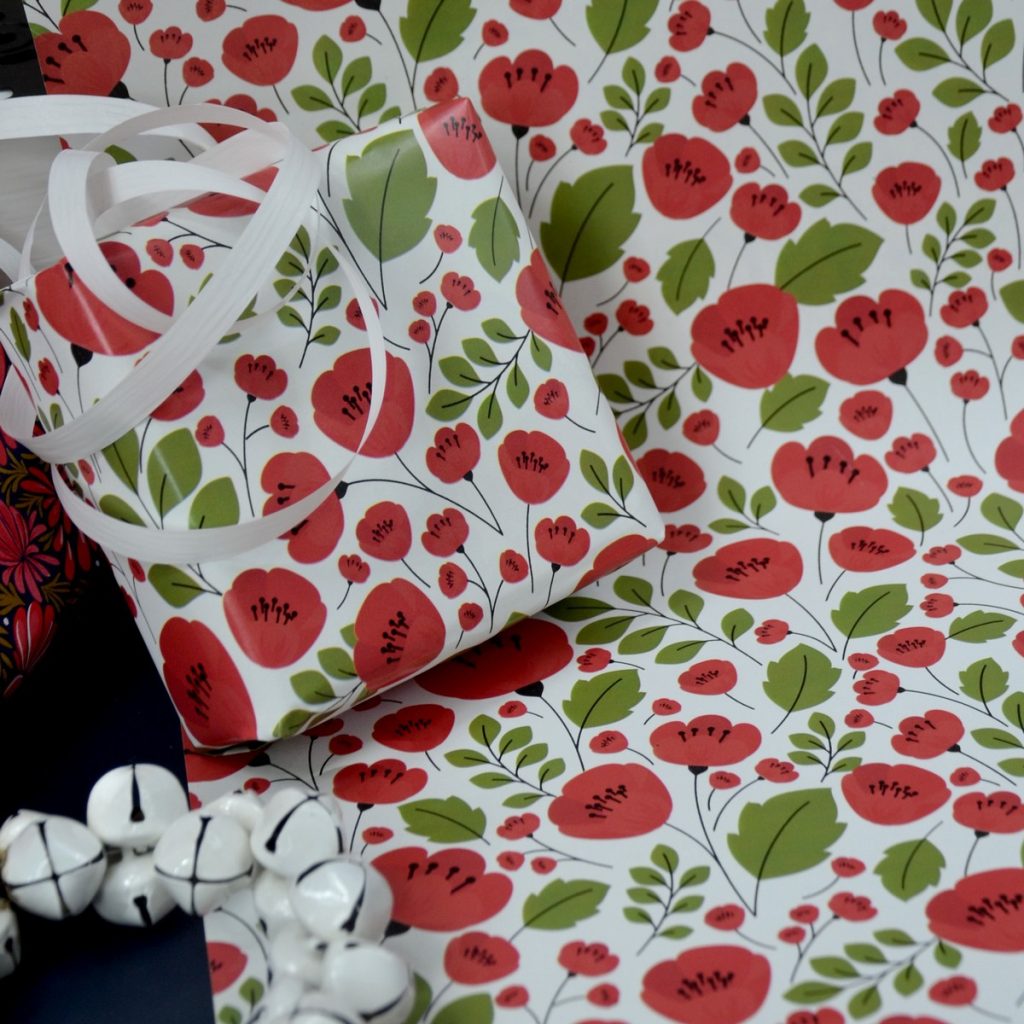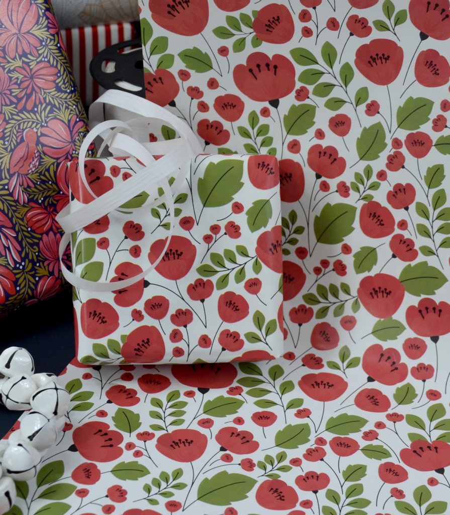 Un nouveau dessin très lumineux pour des paquets cadeaux éclatants ! … Des brassées de coquelicots ! Très gai !