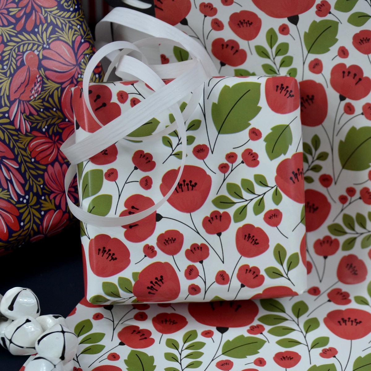 Un nouveau dessin très lumineux pour des paquets cadeaux éclatants ! … Des brassées de coquelicots ! Très gai !