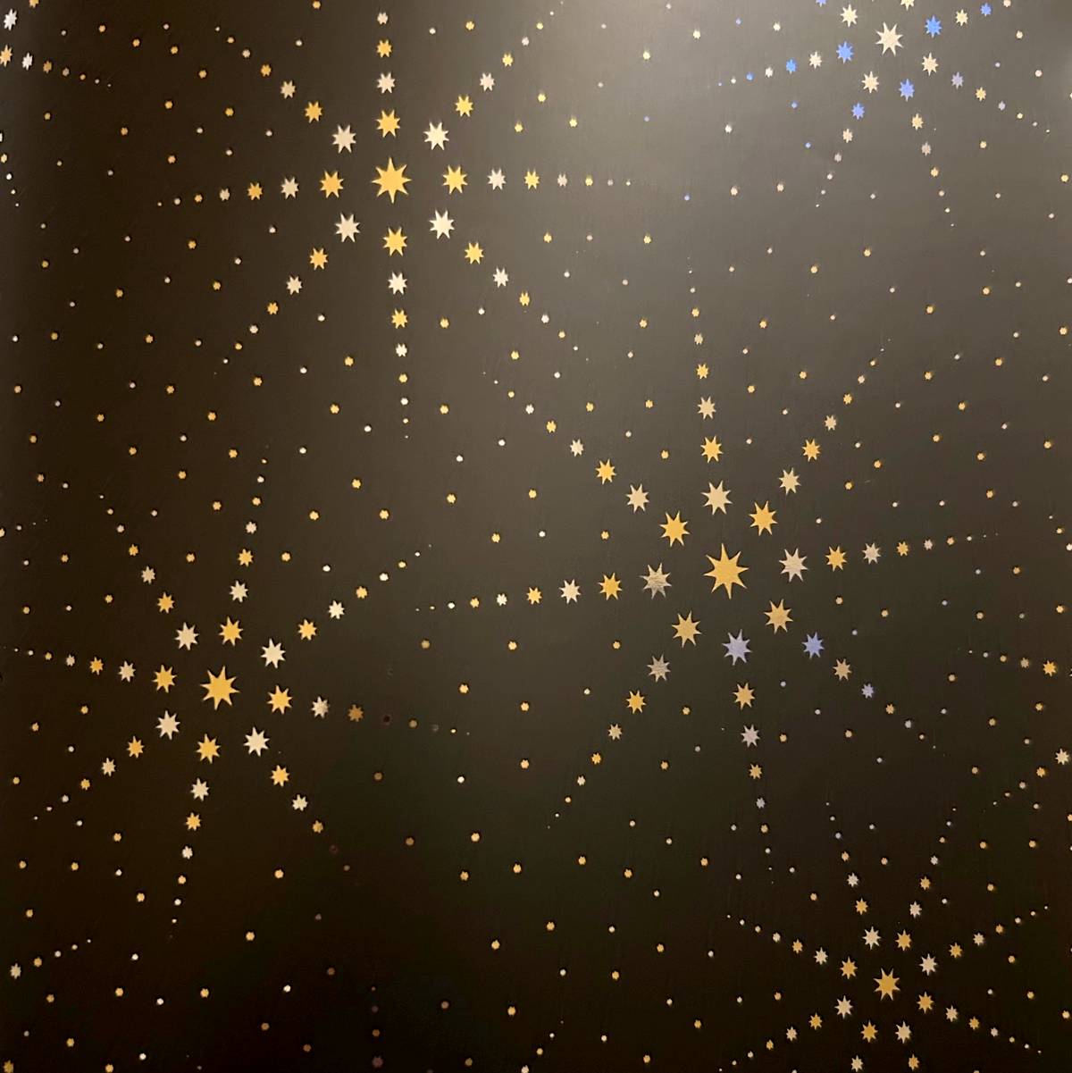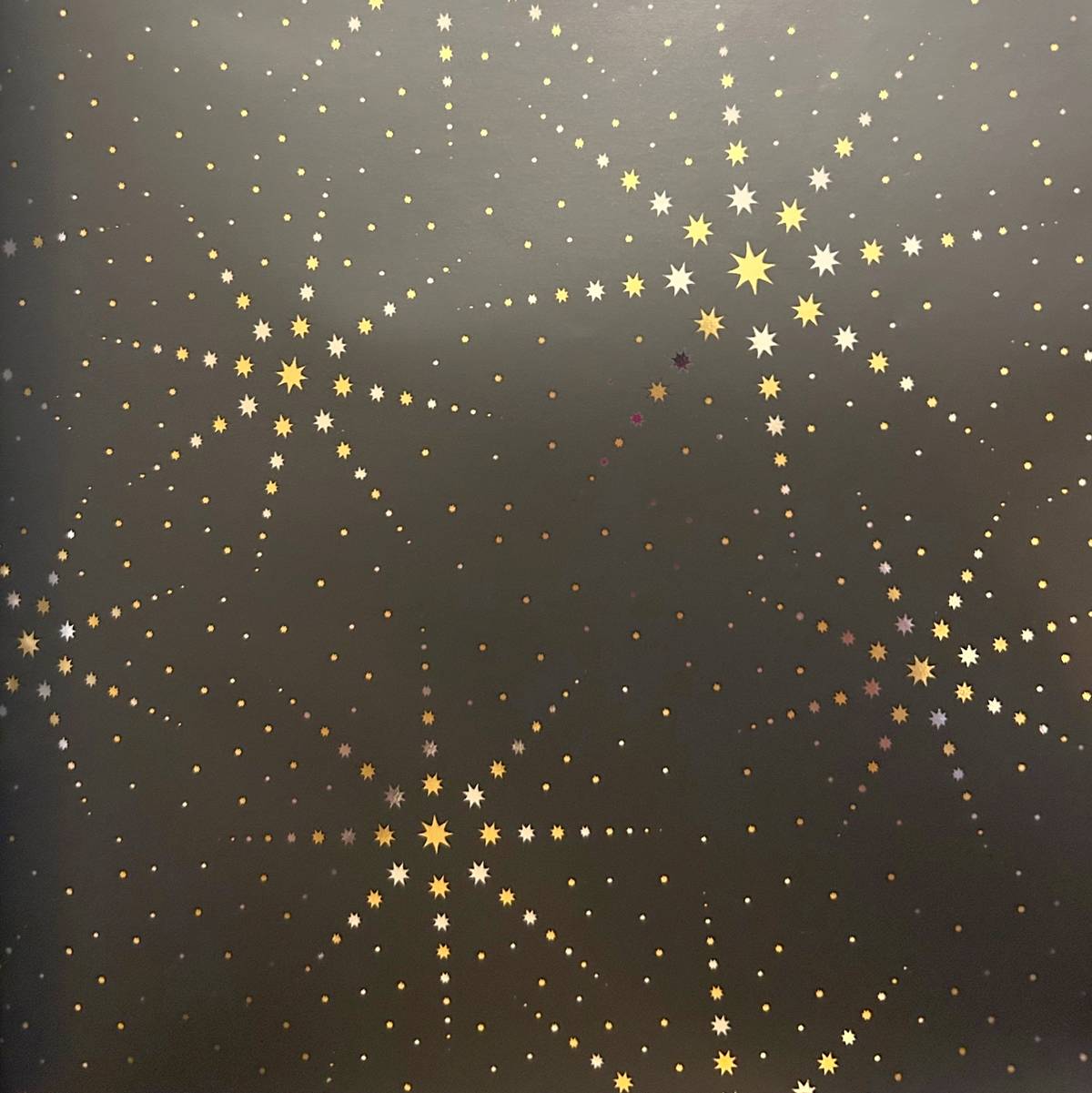 Un papier cadeau très élégant ultra opaque imprimé noir mat avec des étoiles dorées et argentées, métallisées…